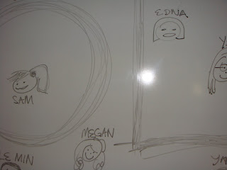 Shahrul drawing our W26L with our faces on it on the whiteboard